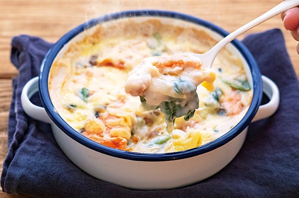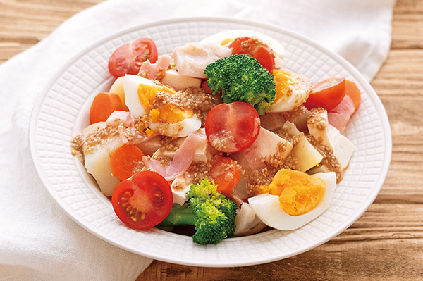 ③ パンにマーガリンを薄く塗り、②をはさんで軽く押さえる。お好みの形に切り、皿に盛り付ける。 【ワンポイント】 水っぽくならないよう、フルーツの水分はよくふき取ってからサンドして。 色とりどりのフルーツが、顔を出してかわいらしい! パーティーにどうぞ。