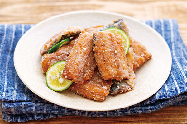 2cm角に切る。170度の油でカリッと揚げる。