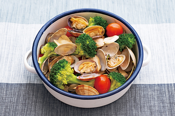 鍋にAを入れ沸騰したらトマトを加えひと煮立ちしたら 火を止め、Bを加え混ぜる。