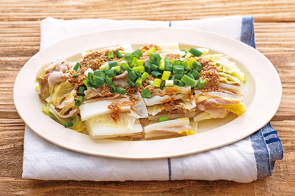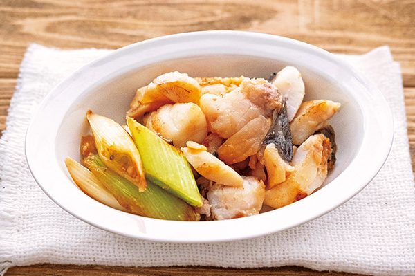 フライパンに油を熱し、(1)を加えて中火で両面 焼いたら取り出し、(2)を入れて中火で炒めて しんなりしたら鶏むね肉を戻し入れて絡める。