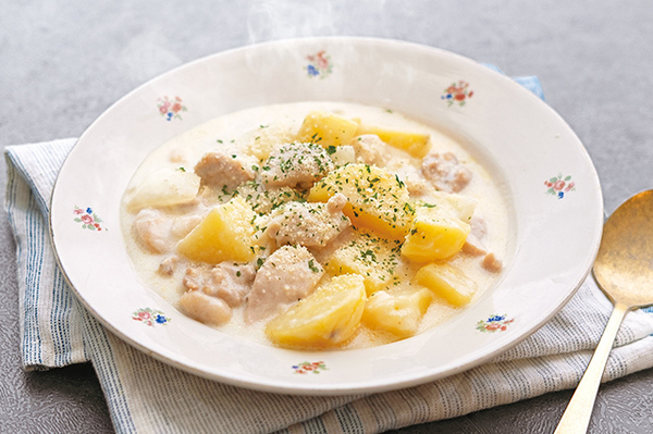 具材を入れて蓋をして弱火で10分煮たら完成。 ポン酢を添えて。